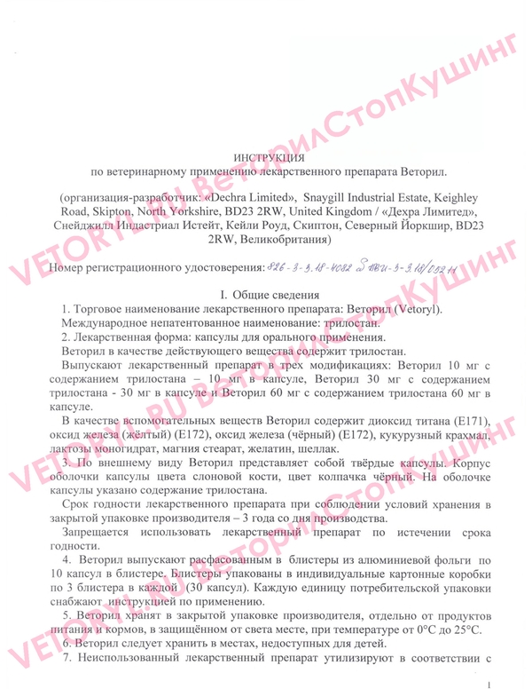 Веторил выпускает Dechra Pharmaceuticals, которая занимается разработкой средств для лечения эндокринных нарушений у животных.